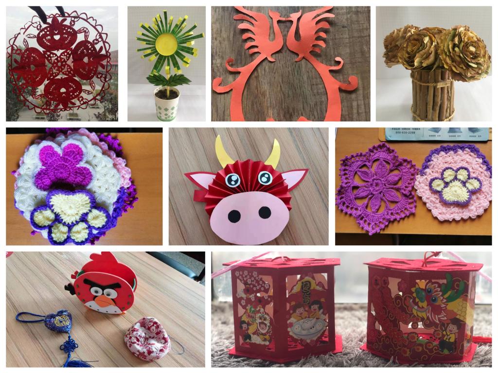 巧手教师利用现有的多种材料,充分发挥自己的巧思和无限的想象力,通过缝、剪、涂、折、卷、粘等各种制作手法,一幅幅艺术作品跃然于屏:有精美的窗花剪纸、有立体的拼贴摆件、有形式各样的编织品、有与自然材料巧妙结合的手捧花……透过一幅幅作品,看到了公共基础部老师们的独具匠心和心灵手巧。