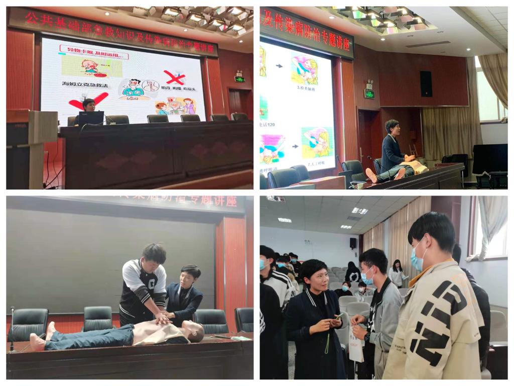 为增强我部学生的传染病防治和日常医疗急救意识,掌握基本急救操作技能,4月1日下午2:00,公共基础教学部邀请洛阳市第三人民医院(洛阳职业技术学院附属医院)专家医生,为学生举办了一场生动而有意义的专题讲座,讲座由学工办主任马玲娟主持,全体学生会干部、志愿者、班干部及优秀学生代表,共计200余名学生参加。