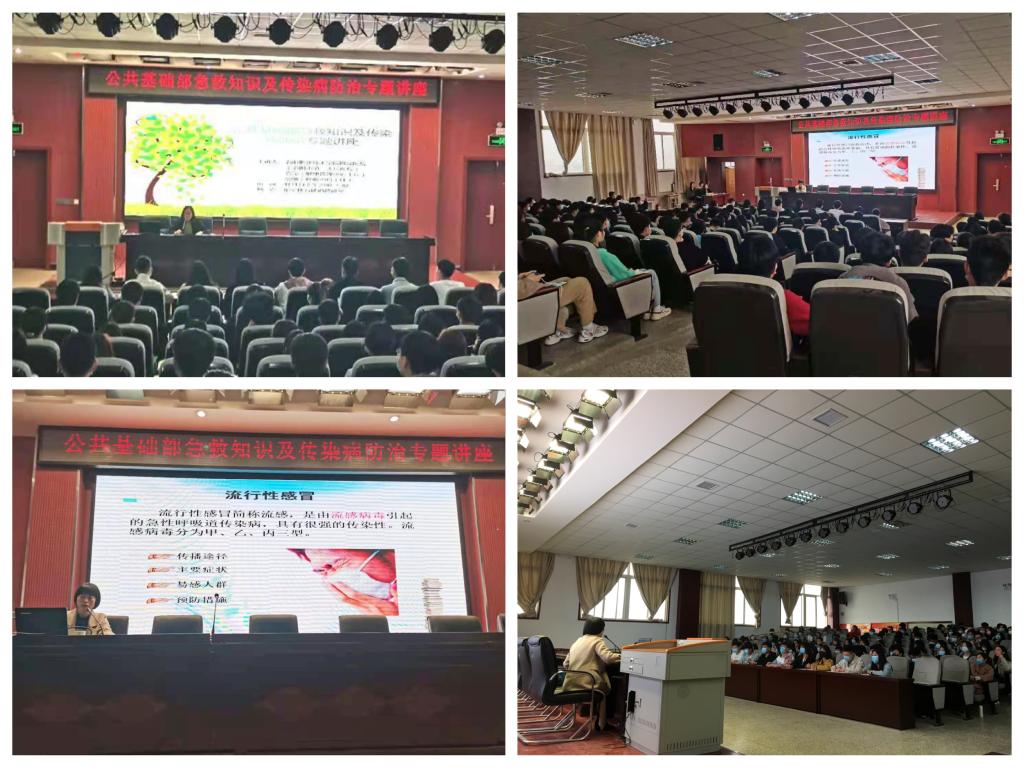 为增强我部学生的传染病防治和日常医疗急救意识,掌握基本急救操作技能,4月1日下午2:00,公共基础教学部邀请洛阳市第三人民医院(洛阳职业技术学院附属医院)专家医生,为学生举办了一场生动而有意义的专题讲座,讲座由学工办主任马玲娟主持,全体学生会干部、志愿者、班干部及优秀学生代表,共计200余名学生参加。