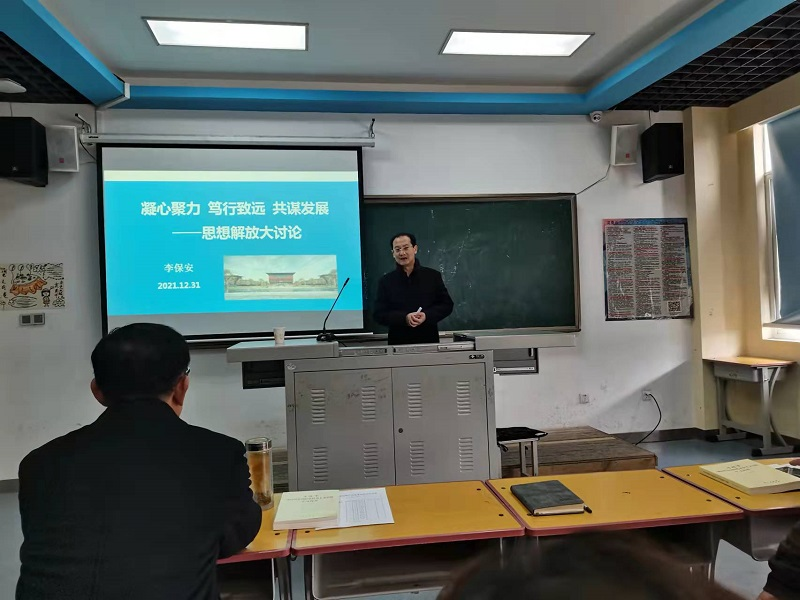 2021年12月31日上午9:00,副院长李保安同志专程到瀍河校区进行调研,并参加了直属基础部支部主题党日活动。李保安副院长先是看望了正在集体阅卷的教师,询问了瀍河校区和中专部的基本情况。在支部大会上,李保安副院长以《凝心聚力笃行致远 共谋发展》为题,对党的十九届六中全会精神和解放思想的必要性进行了解读,并结合洛阳职院的发展,教师应该怎么做,为大家上了一堂为时两个小时的主题党课。直属公共基础教学部全体党员参加了此次学习。