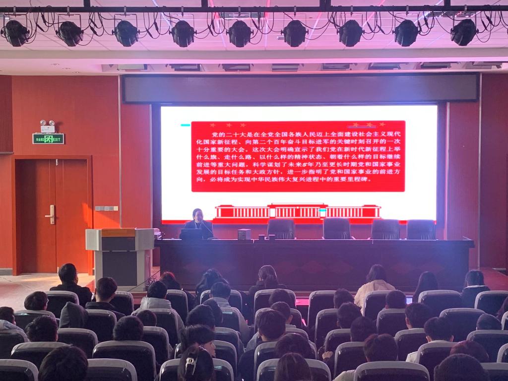 为深入学习宣传贯彻党的二十大精神,贯彻落实学校党委关于学习宣传贯彻党的二十大精神的要求和部署,推动党的二十大精神在广大学生群体中入脑入心,2月23日下午公共基础教学部邀请我校思政部教师孟维改开展党的二十大精神宣讲活动。