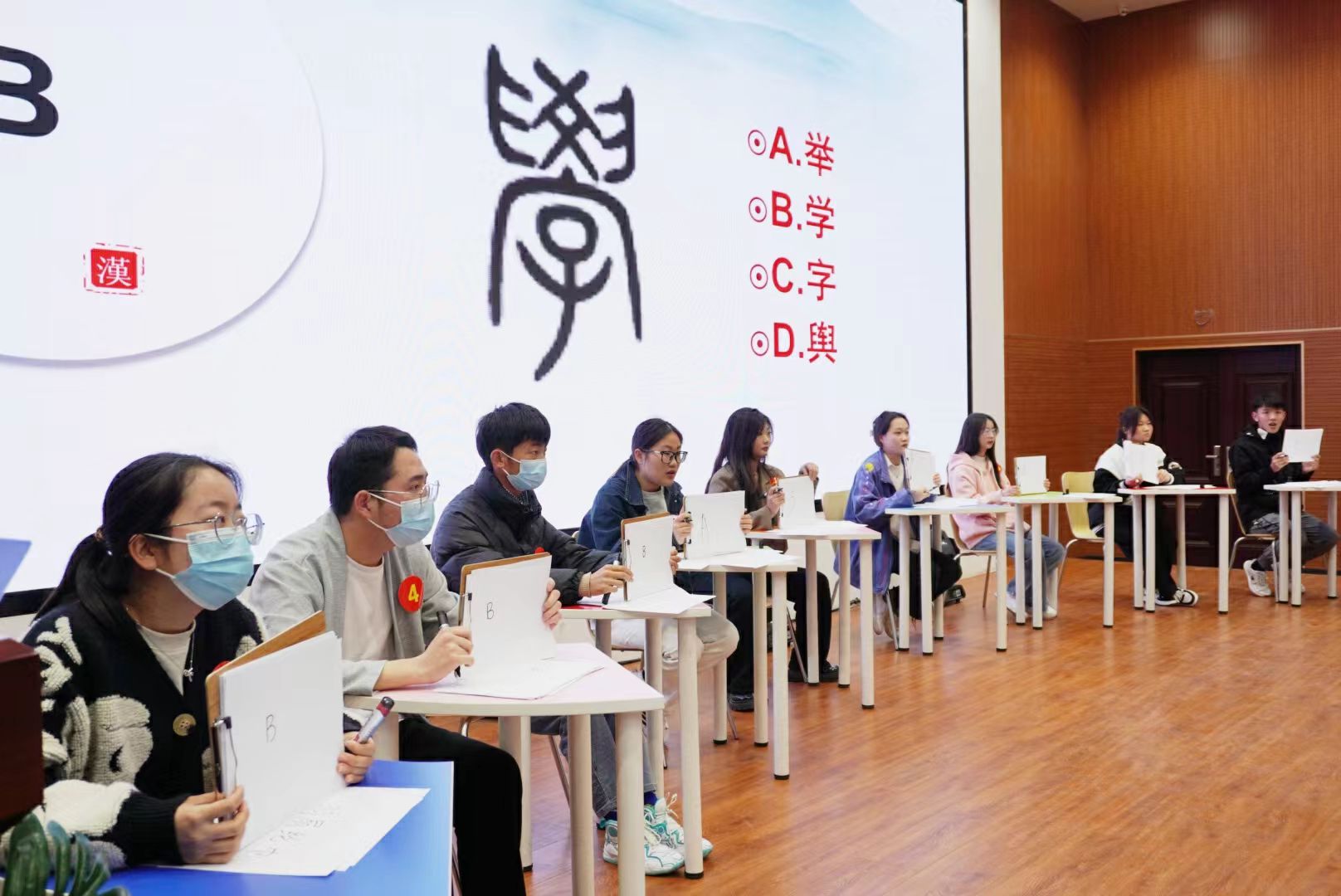本次大赛由课程中心主办、公共基础教学部承办。内容丰富,形式多样,涉及汉字书写、成语故事、汉字知识、历史典故等。经全校范围海选,共有120余名学生参加了初赛,通过第一轮的笔试比拼,27名选手脱颖而出晋级决赛。