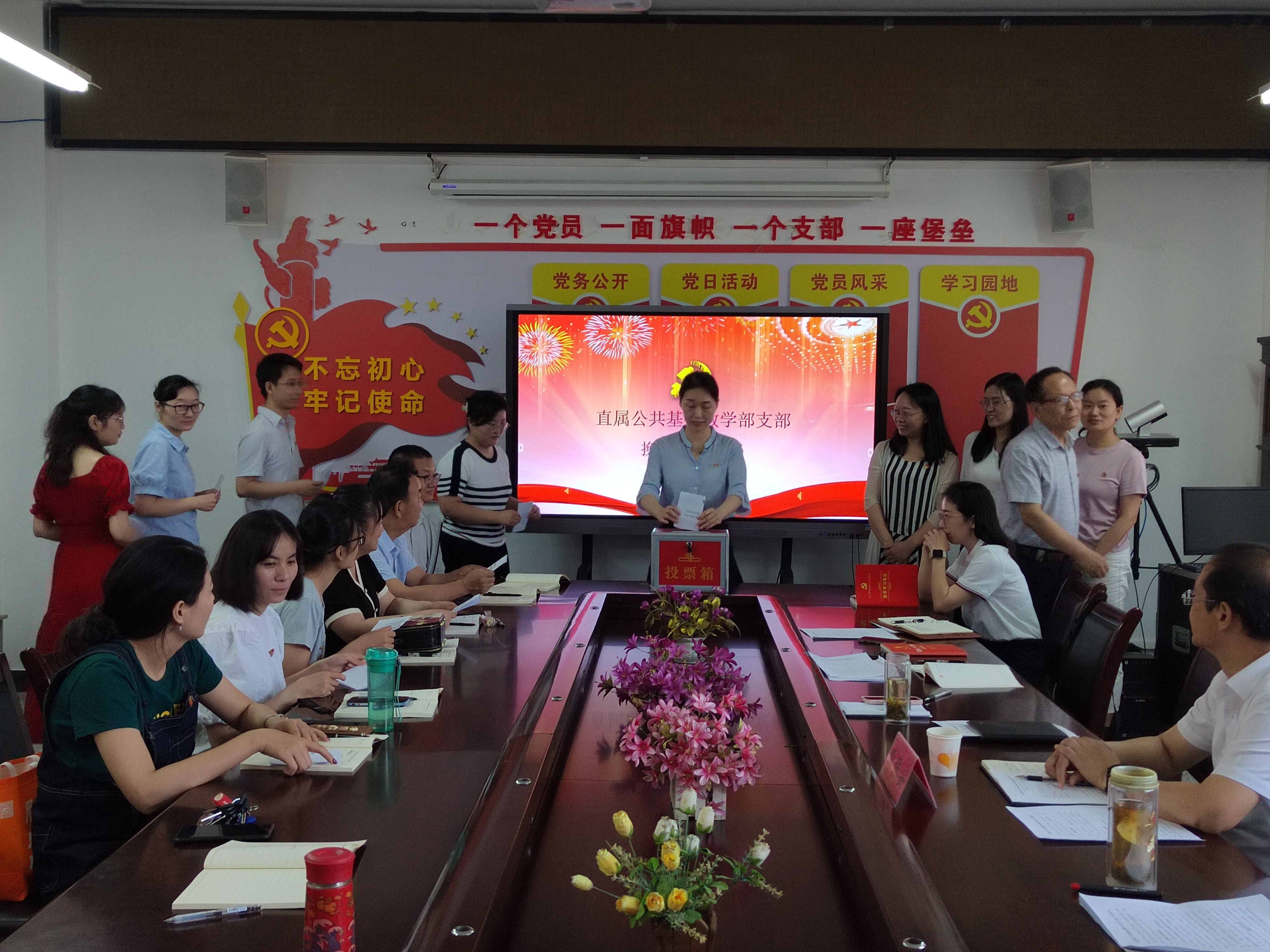 会上,会议审议了直属公共基础教学部支部上一届工作报告。会议通过换届选举办法、支部委员候选人、计票人、监票人名单,并通过无记名差额选举产生了新一届支部委员。