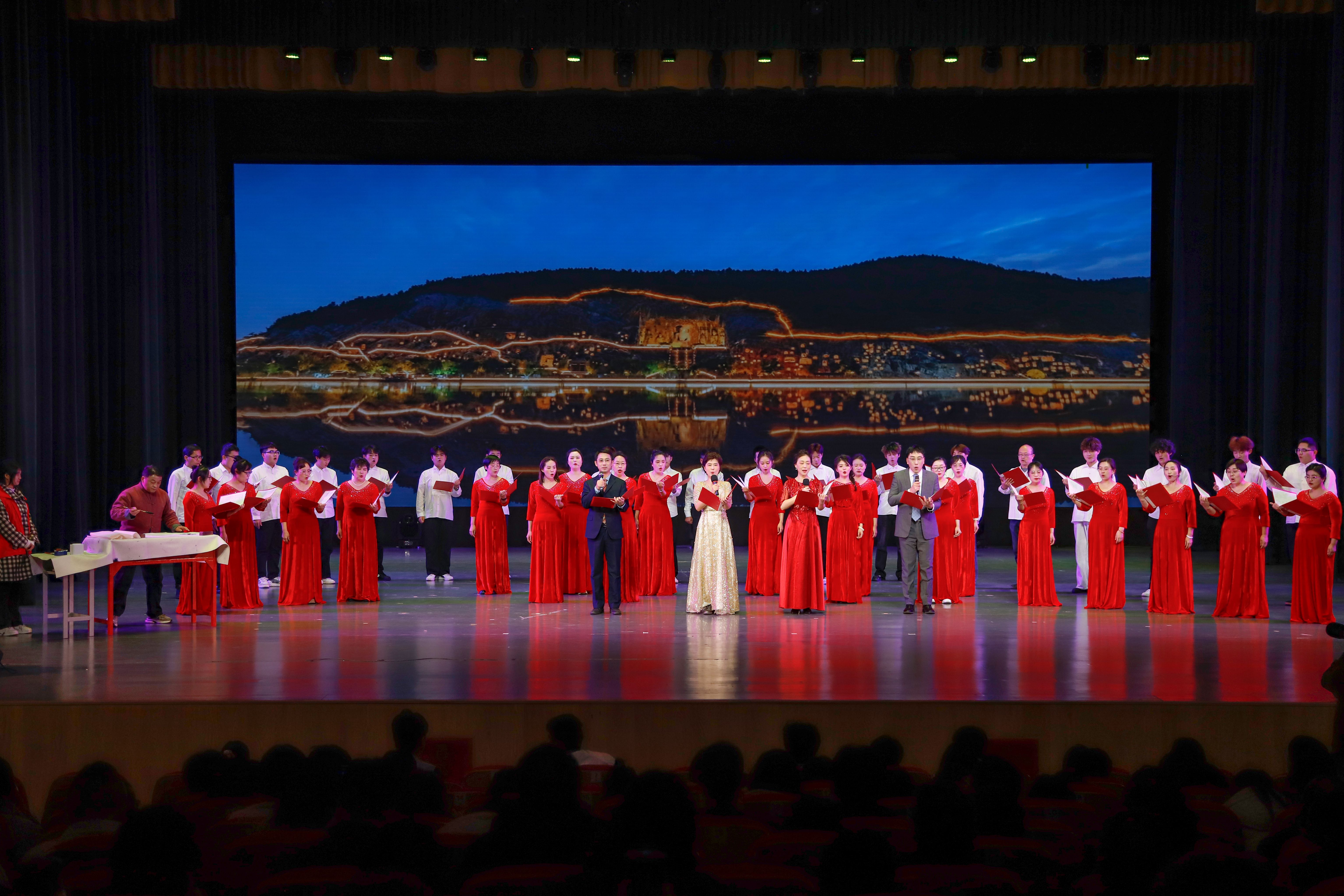 由公共基础教学部谭宝国、张巧丽、宗岩等老师作词,苏萌、吕雯、史建楠、张向峰领诵,全体教师共同参加的原创诗歌《匠心逐梦 再启新篇》赢得了现场观众的阵阵喝彩。教师们用饱含深情的朗诵,表达了对职业教育事业的热爱和对我校未来发展的美好憧憬,传递出了洛职人在新时代匠心逐梦、砥砺前行的决心和信心。
