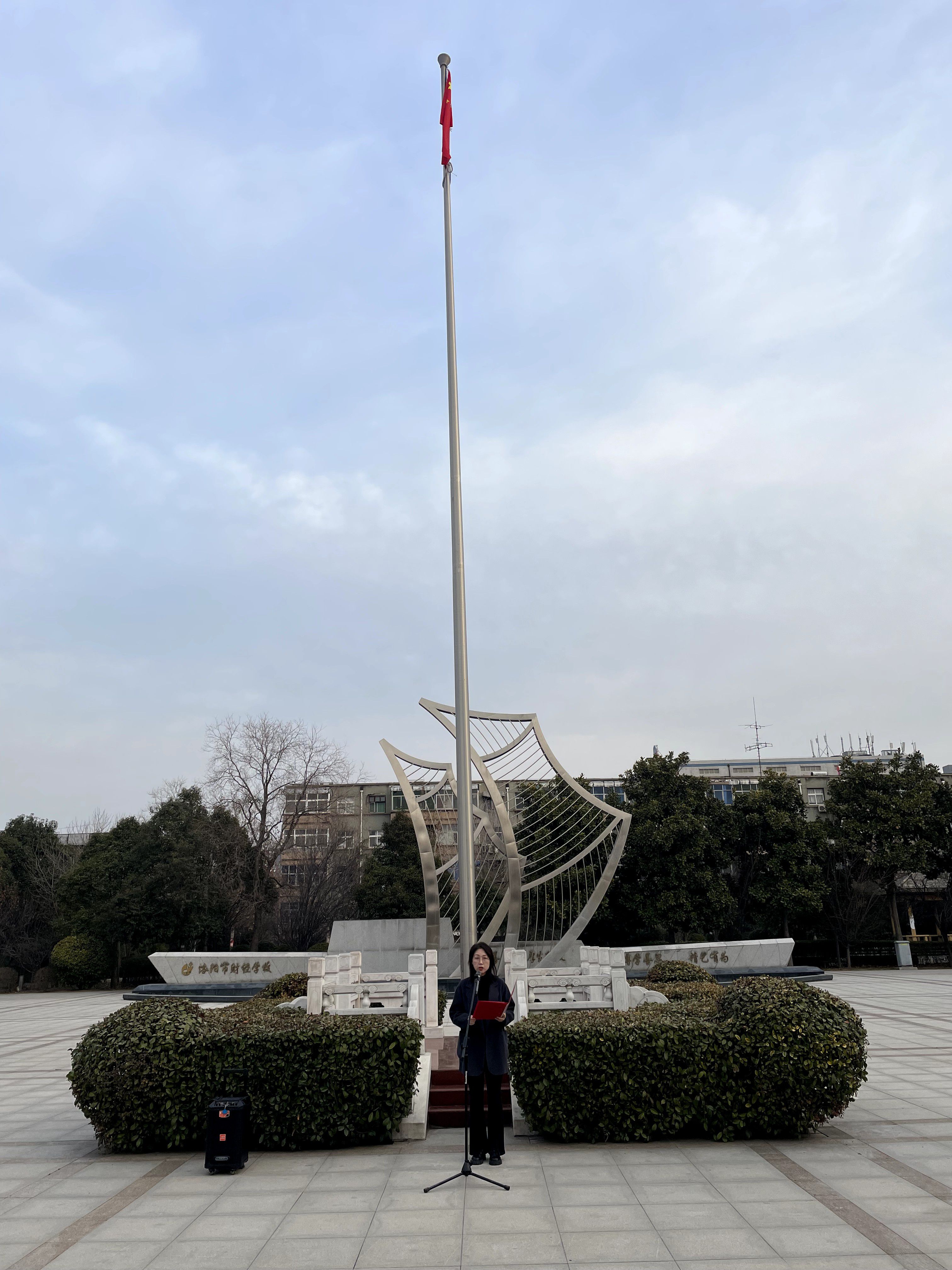 本次升旗仪式由公共基础教学部副主任白琳琳主持。公共基础教学部主任苏萌以《春启新程 逐梦前行》为题发表讲话。她带领师生们一同回顾了2024年学校取得的辉煌成就,向每位奋斗者致以敬意,表达感谢。