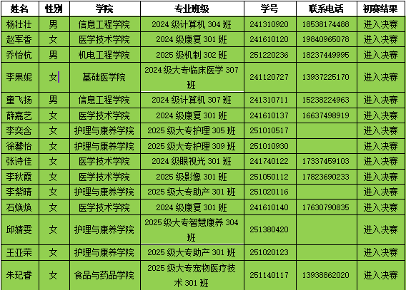 经大赛组委会评委严谨评审与打分,2025年洛阳职业技术学院演讲比赛初赛已顺利结束。现将决赛晋级名单及赛事安排正式通知如下,共15位选手成功晋级决赛。