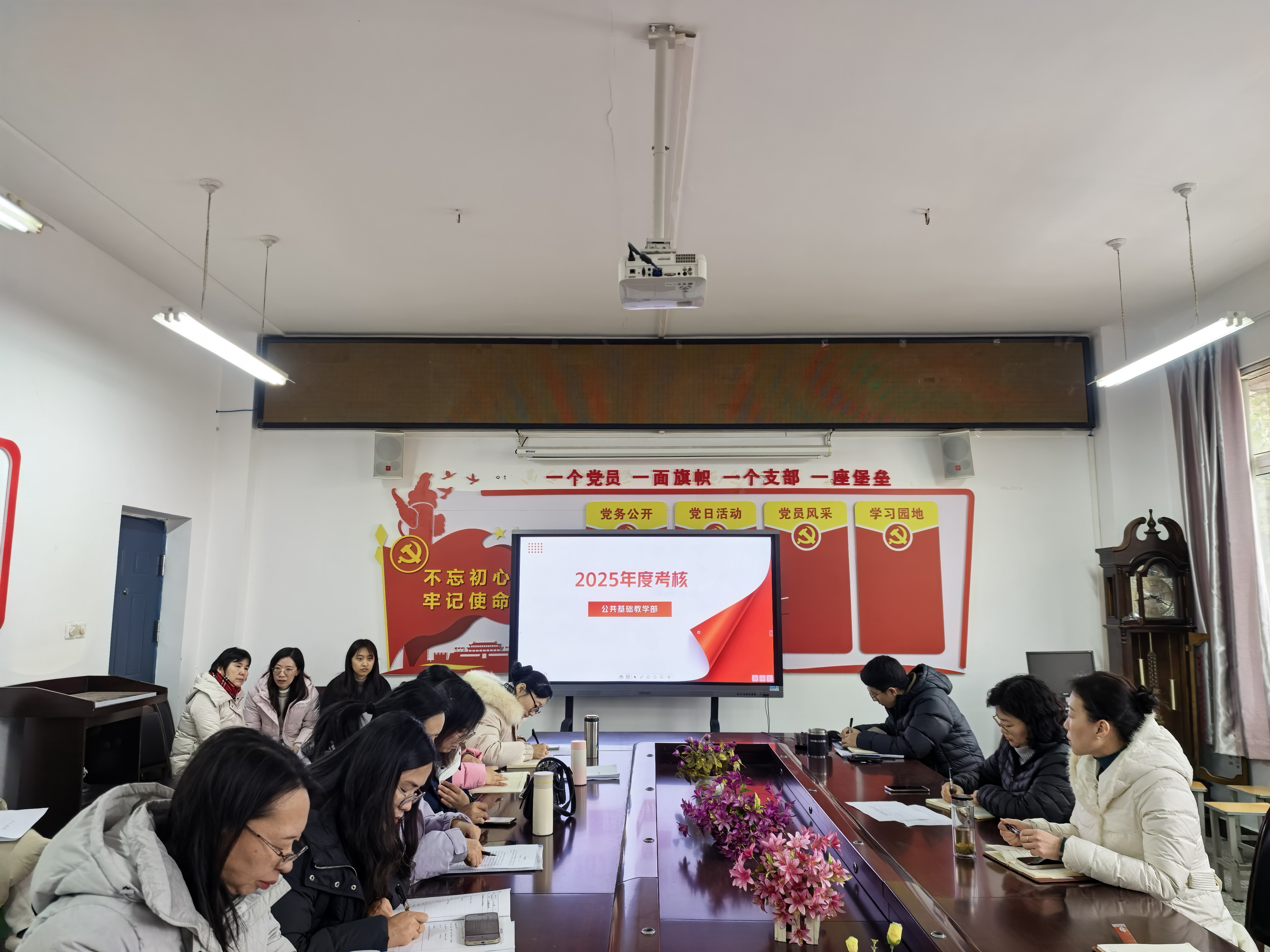 副主任白琳琳宣读了《基础部2025年度教职工考核方案》,从考核标准、实施程序到结果运用等方面作出详细说明,为考核工作的规范开展筑牢制度基础。