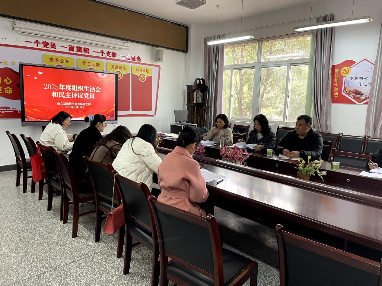 3月19日,公共基础教学部直属党支部召开2025年度组织生活会并开展民主评议党员工作。学校人事科科长申邵阳列席会议并指导工作,支部全体党员参加会议。